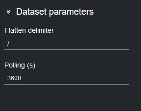 Endpoint Options: When adding a new endpoint, parameters (for example, parts of the endpoint whose value should be fetched from other endpoints) should be encapsulated in curly braces: {part_name}. The value inside curly braces is resolved either by using other endpoints present in the Dataset configuration table, or the ones specified in the Endpoint fixed options section of the right-most column in the main view.
