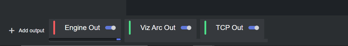 Datacenter provides data to one or more outputs, so graphics can be linked to it seamlessly. To do so, first create and configure the desired output(s), which is then listed at the bottom of the main UI, in the Viz Outputs footer.