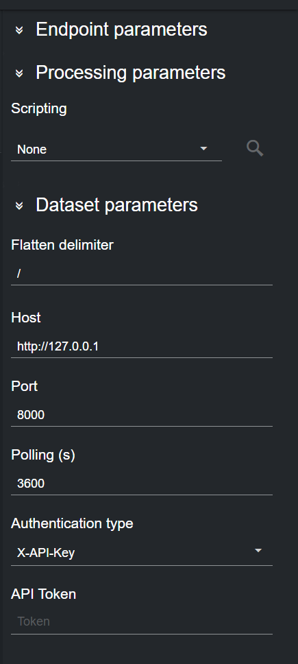 Once an endpoint is added to a dataset, you can select the endpoint card, where its properties can be entered. You can now edit the endpoint configuration.