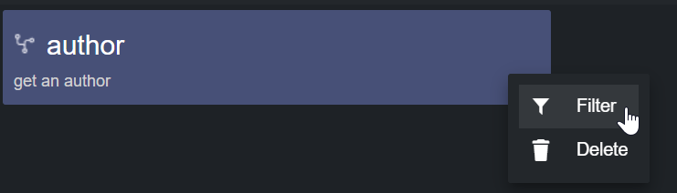 Values read from a file into a dataset can be filtered with the Filtering tool. To do so, select the dataset card, click on the hamburger menu and then press the Filter button.