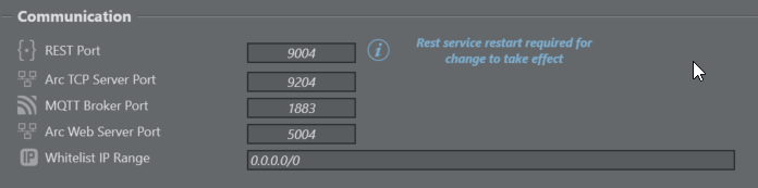 Each Viz Arc configured as an output in Datacenter, receives live data from it. As data is posted to Viz Arc using an HTTP POST protocol, a valid port must be specified for the Arc Web Server Port field found in Setting > General > Communication of the Viz Arc Configuration panel: