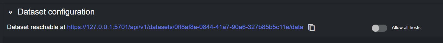 Info: If the Middleware runs on a separate machine than the one running Datacenter, substitute the localhost/127.0.0.1 part of the address in the Dataset configuration panel, with the machine public IP.