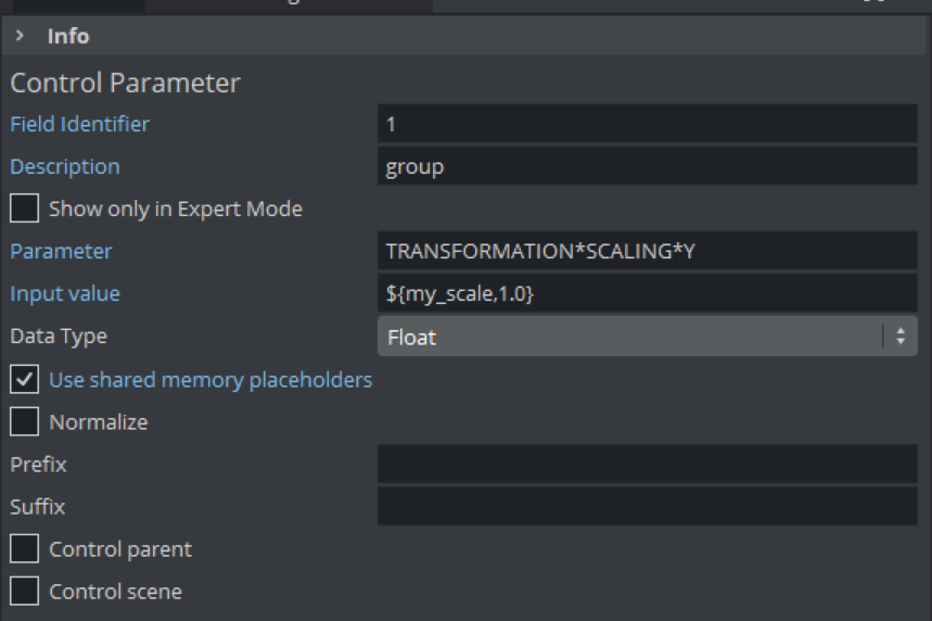Some Control plug-in supports Shared Memory placeholders. Placeholders can be described by ${shm_key}, where shm_key is the name of a Global Shared Memory Map. You can also define a default value by adding a pipe and the value. For example: ${shm_key|Default}, where Default is used as default value if the Shared Memory Map is empty or does not exist.