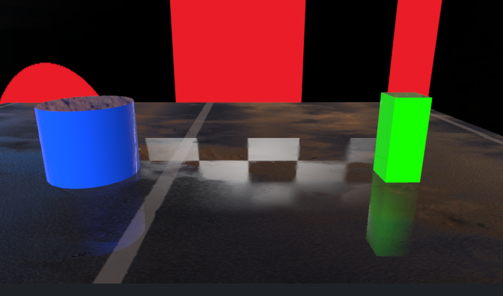 Below is an example of a rendered scene with talent reflections, a simple checkerboard texture is used as talent reflection input source.