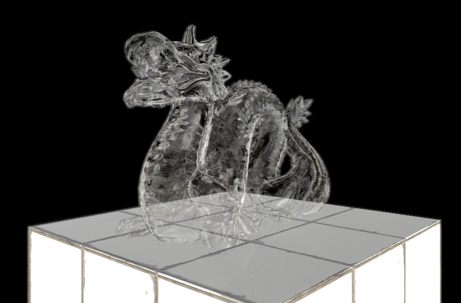 The following shows an incorrect rendering of a transparent object on a cube. The Z-ordering is wrong, therefore the transparent parts on the cube appears incorrectly (black). This might only happen when flying around it. When adding Z-Sort Priority to the parent container and reordering the tree, the cube is to be rendered first and the dragon afterwards, the transparency issues are fixed and the dragon appears correctly on the cube, even when rotating.