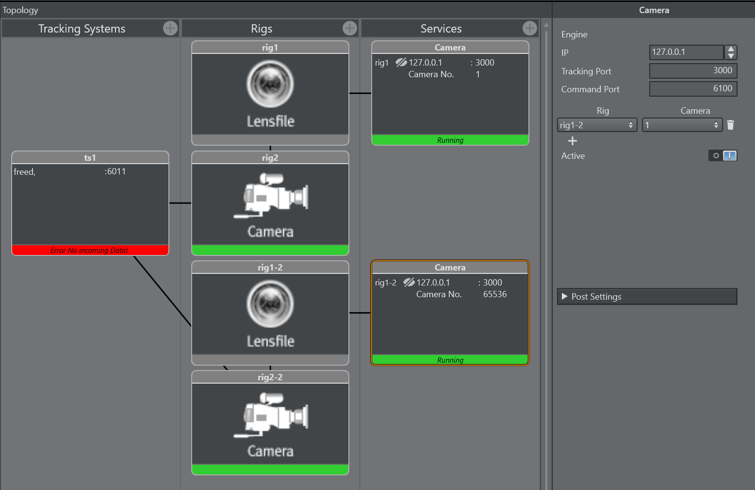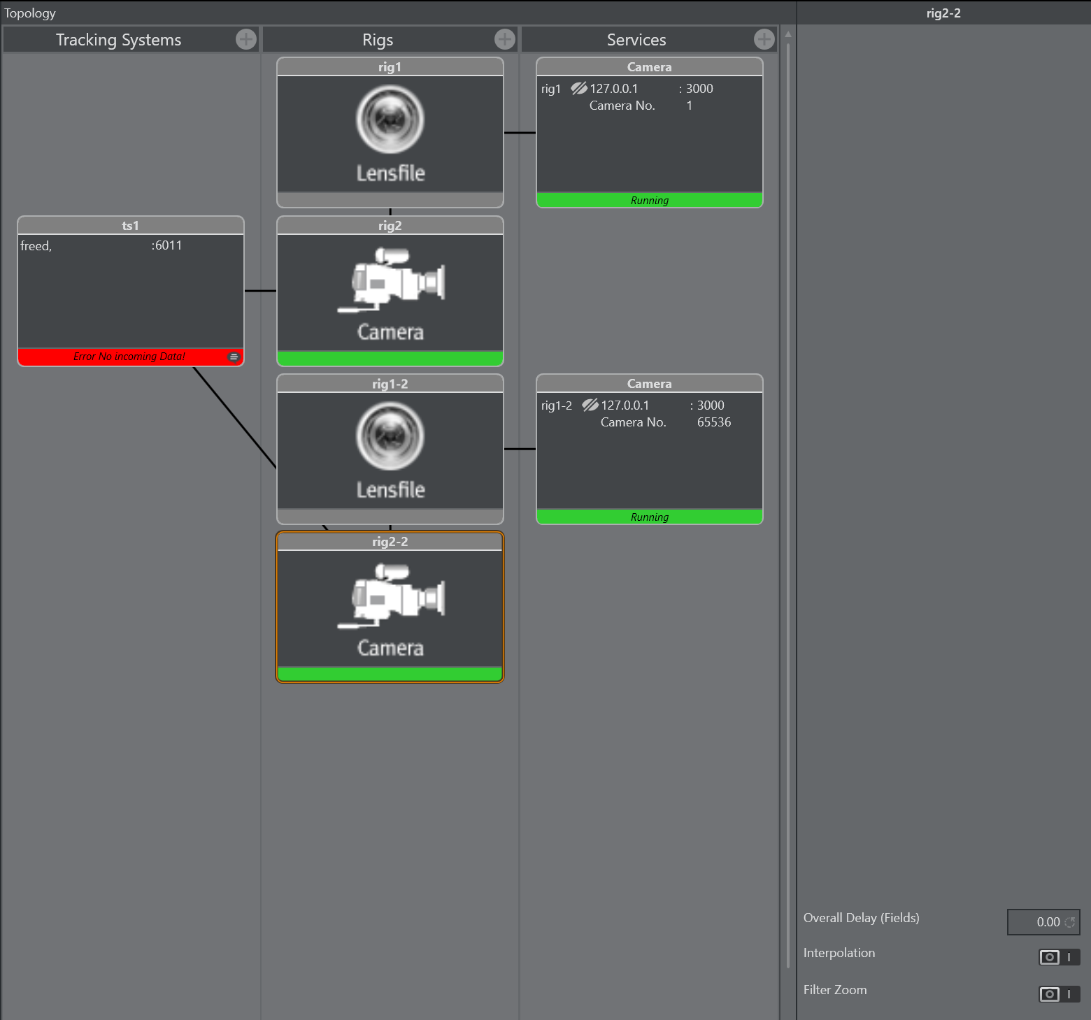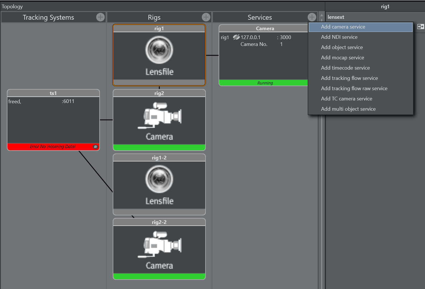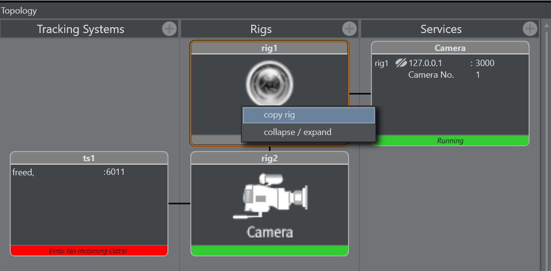 Connect the second camera service with the previously created copy of the rig.