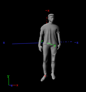 Note: To identify the correct axes, check the local coordinate system of the container and set the axes for the specified directions accordingly. For the right hip joint in the talent below the the z-axis points into Left Hip to Right Hip direction and the x-axis into Right Hip to Knee direction.