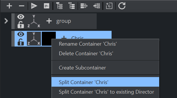 Split (right-click) the container to obtain the full tree including all subcontainers.
