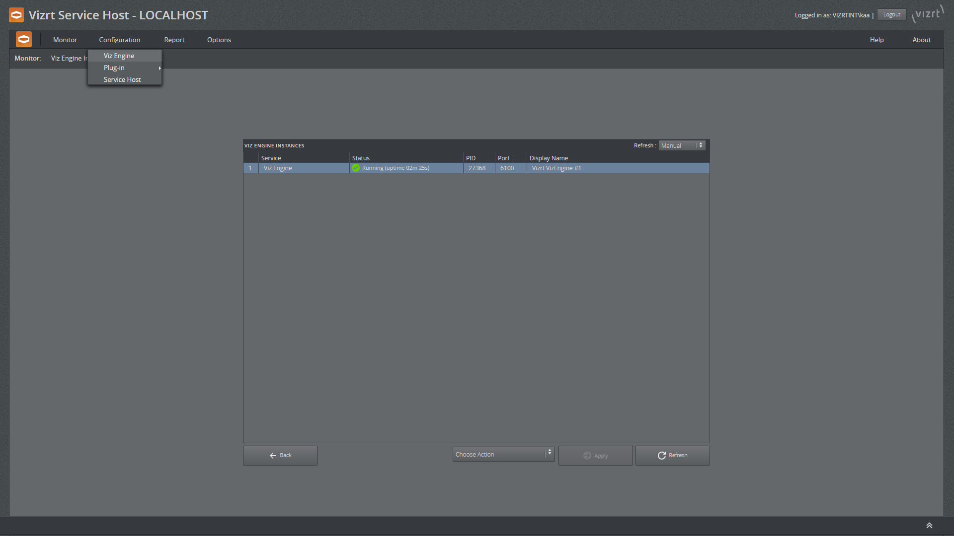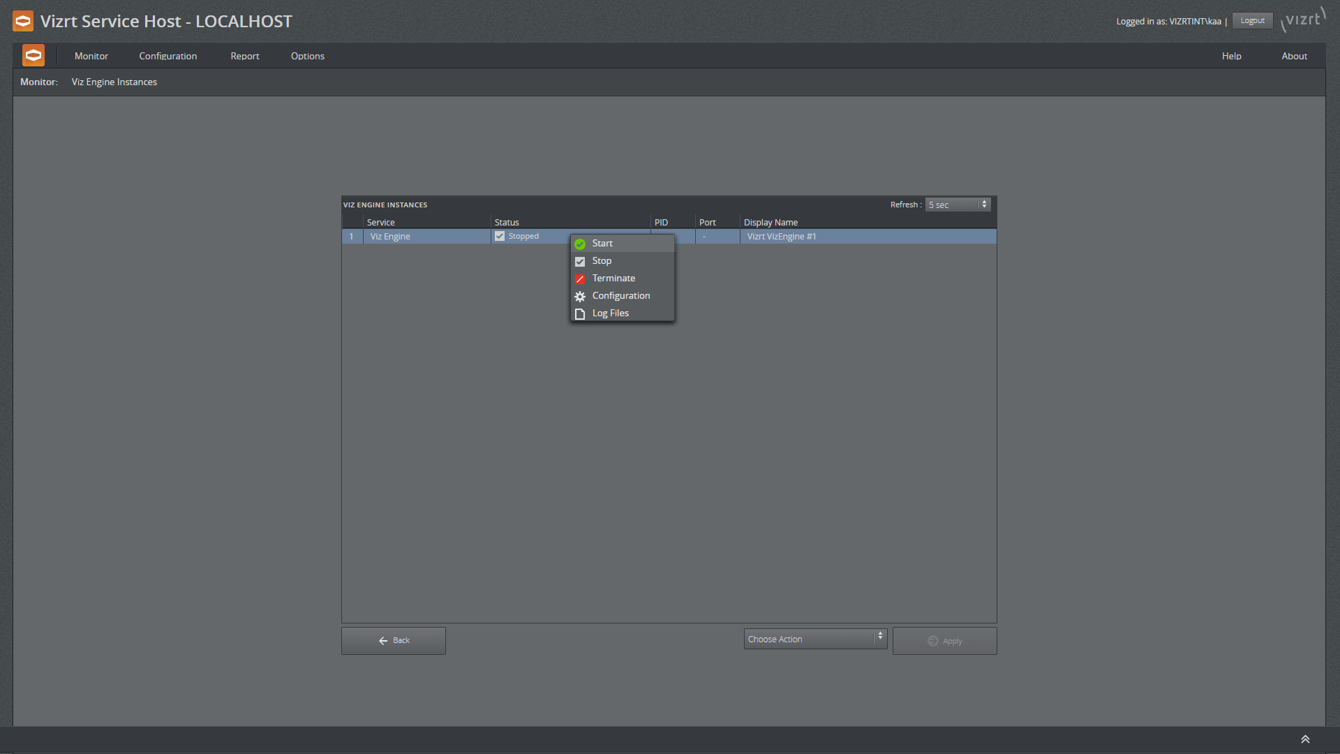 Note: If there is no interactively logged-on user, Service Host (Control Mode) is not able to start Viz Engine.