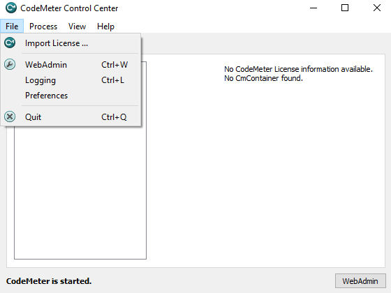 After installation, the CodeMeter Control Center is installed and located in the taskbar.
