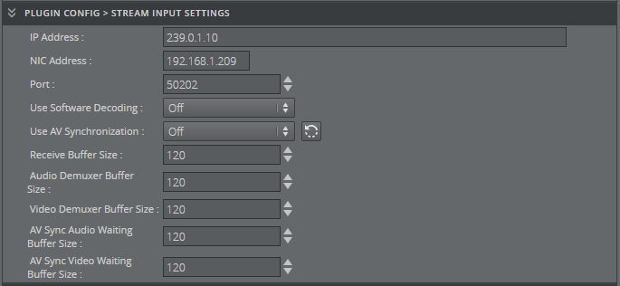 The most important parameters for receiving RTP/H264 streams are the IP Address, NIC Address and Port. The connector setting still needs to be specified. Any value without space will do.