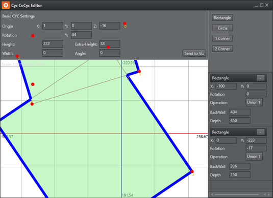 The CYC Editor enables the user to create a Cyc and CoCyc mask which is needed to mask out regions of the Studio which are not covered by the green/blue screen.