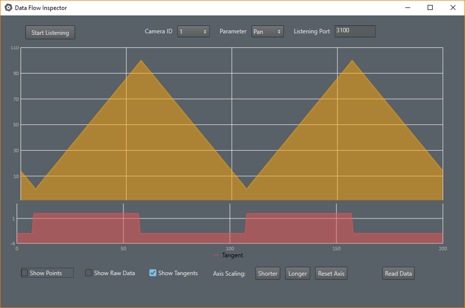 Start Listening: Starts receiving incoming tracking data. As soon as data is detected, it is added to the graph.