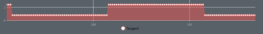 Below is an example of tracking data coming in in a perfect ramp, the tangent clearly shows the change in direction of the tracking data values.