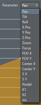 Information: Raw data values do not support all 18 parameters. Available options are: Pan, Tilt, Roll, PosX, PosY, PosZ, Zoom and Focus.