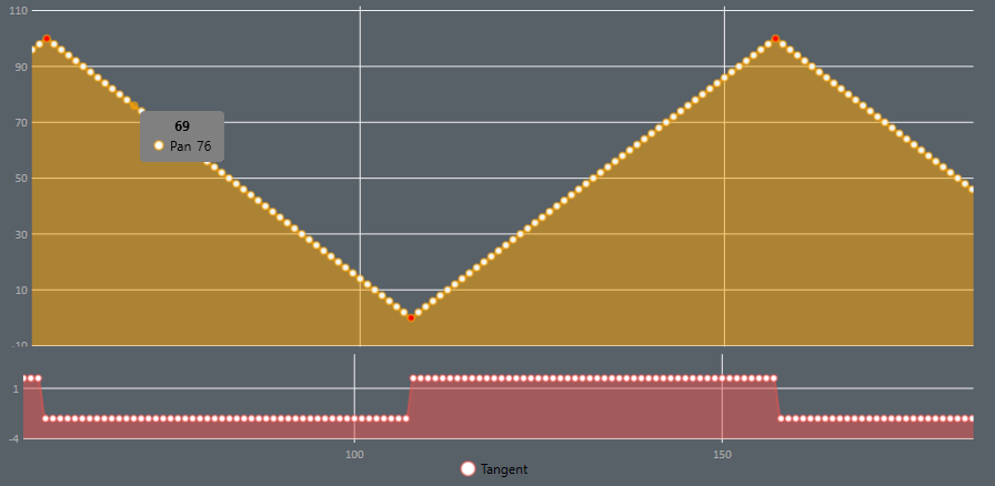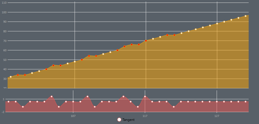 The tangent curve represents the slope between every point. Strong changes within this curve indicate that the difference between points is high and therefore probably not following smooth and realistic values. This curve can be enabled/disabled on the bottom menu.