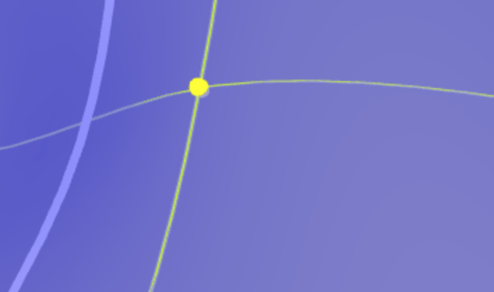 A point that is not mandatory and untouched (blue), and a touched point (yellow). | A selected point. |