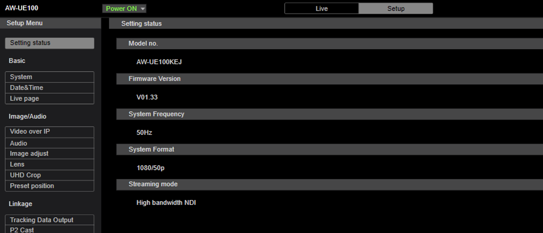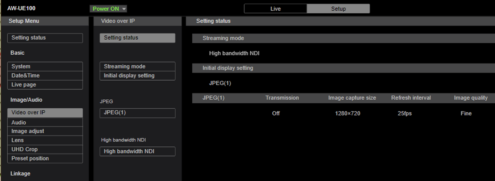 There are also some important settings which need to be done in the Camera Setup. As an example, we configured the Panasonic AW100 PTZ camera.