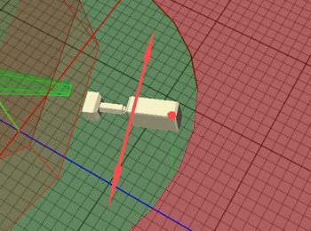 Whenever the user clicks in the rig editor to adjust a specific value, the preview panel displays the values as a handle that can be dragged. Handles can be arrows (position) or disks (rotation). Whenever the user touches a Handle with the mouse, the handle goes from its base color to yellow. This indicates that only this handle is active at the moment. Clicking with the left mouse button and moving the mouse in handle or in the opposite direction modifies the handle's value.