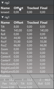 Activates the head up display, which displays the tracked raw coordinates of the selected rig.