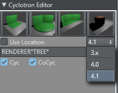 A new Cyc workflow was introduced in Viz Engine version 4.0. The Cyc resides now in a special scene property, which resides in the Virtual Studio scene. Please refer to the Viz Engine Administrator Guide for further information. As the transportation of the Cyc information sent to the Engines is different now, there is a new dropdown in the Cyc Editor to select the used Viz Engine version.