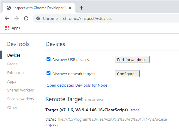 In the Chrome browser, you should now see the Viz Arc script available for debugging.