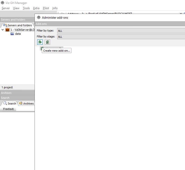 The archive to be imported anywhere on the Graphic Hub is located in the program-data folder (typically C:\ProgramData\vizrt\VizArc) under the Resources\AddOns folder and is called VizArcAddOns.via. It contains a dummy image with all necessary add-ons attached.