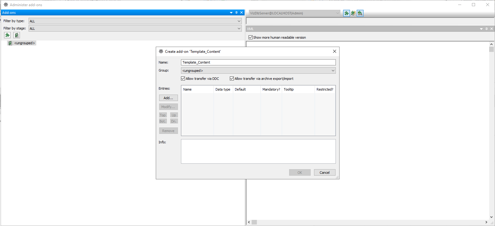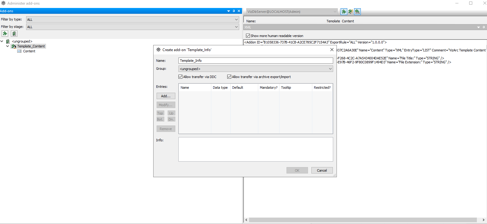 Name the new add-on Template_Content. Note that the name is case-sensitive. Tick the boxes Allow transfer via DCC and Allow transfer via archive export/import.