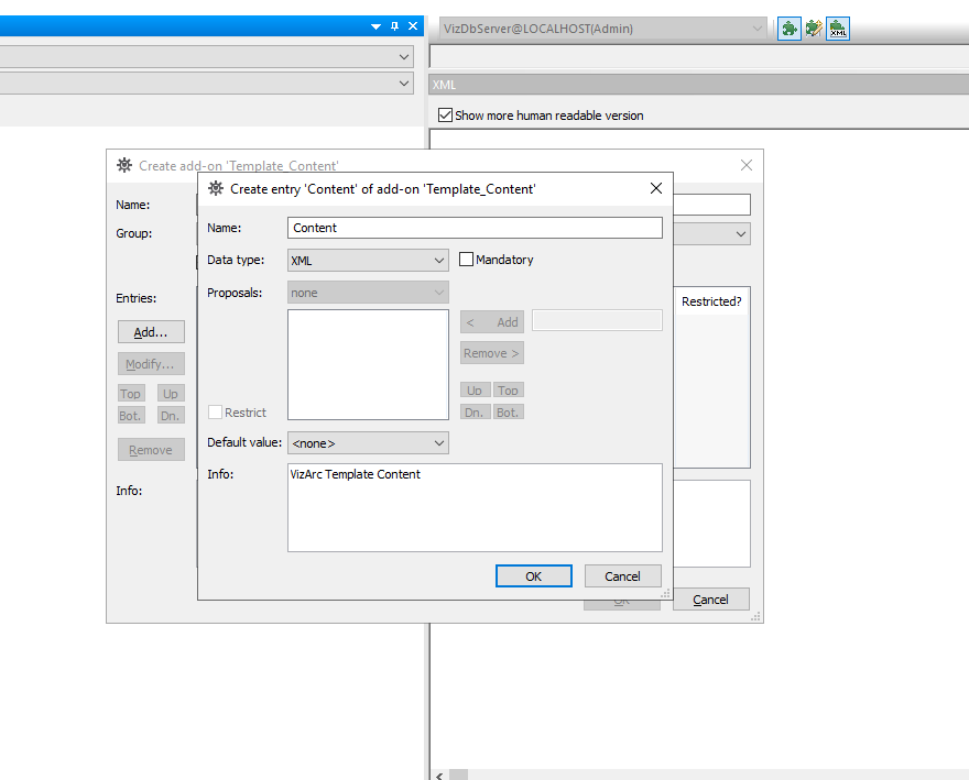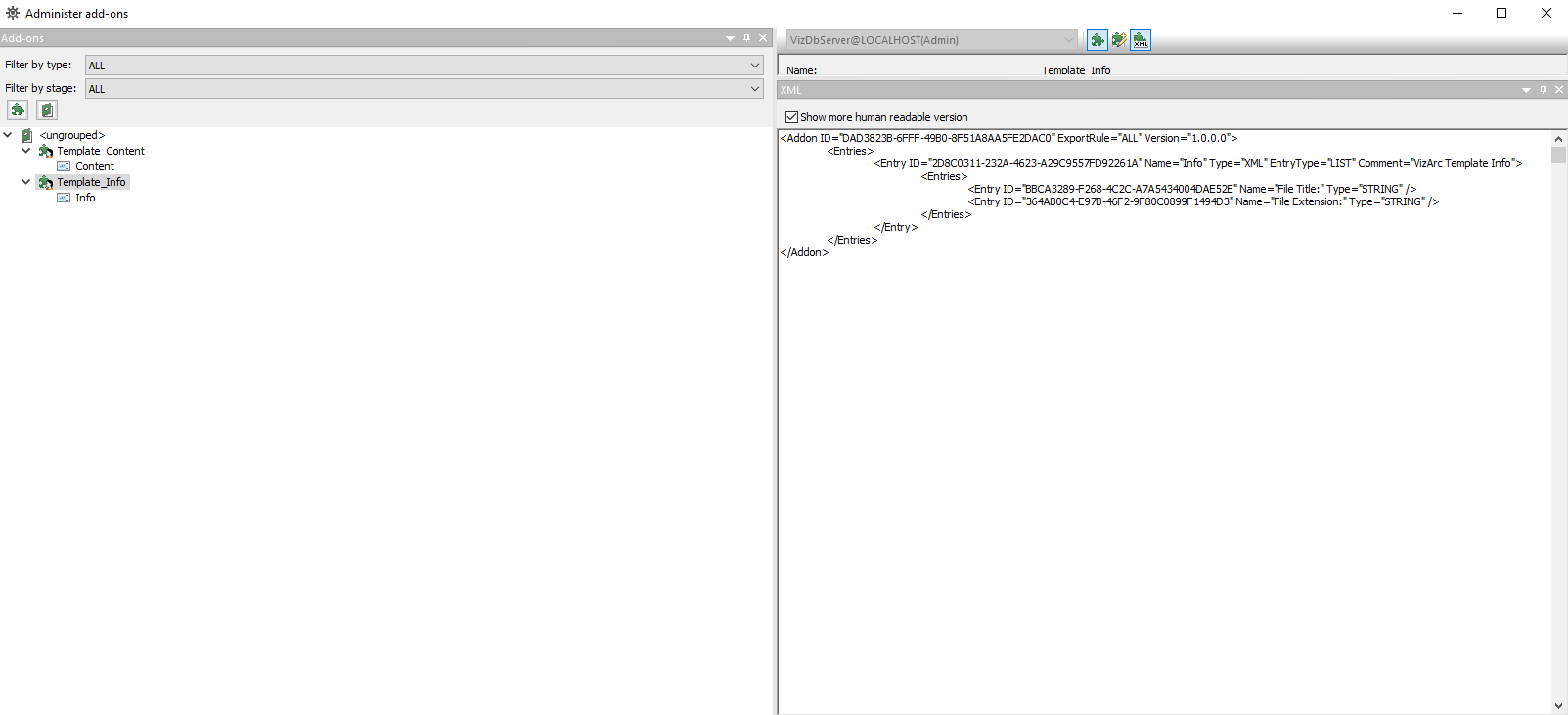Add an entry under Info, something like Viz Arc Template Info. The data type must be XML.