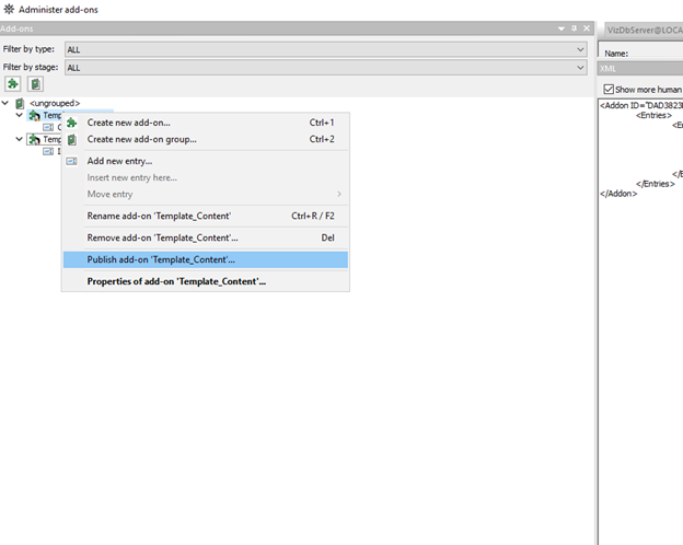 Publish by right-clicking the two add-ons and selecting Publish add-on ….