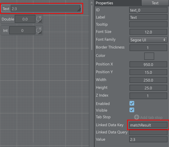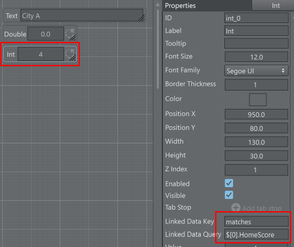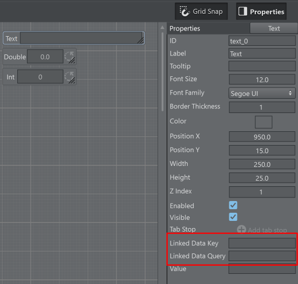 Some scripting UI components like Text, Int or Double have the properties Linked Data Key and Linked Data Query.