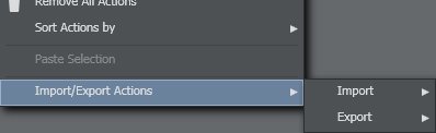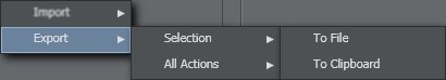 You can export selected action boxes or all boxes in the opened project. You can choose to export boxes internally (To Clipboard) or to an external file (creates a text file containing a .json structure).