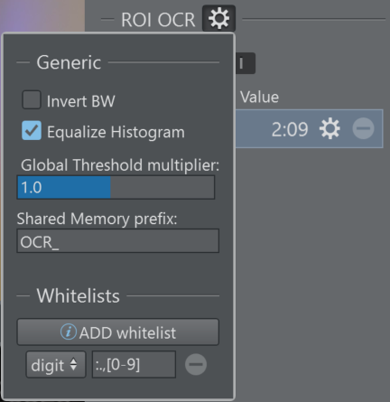 • Global Threshold multiplier: If there is a light change that leads the algorithm to mixed results, it is possible to use this slider to change all the threshold values of the OCR Rois.