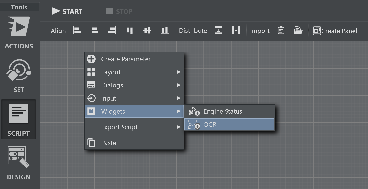 Go to the main script (or any template script), right click on the UI editor and select Widgets > OCR.