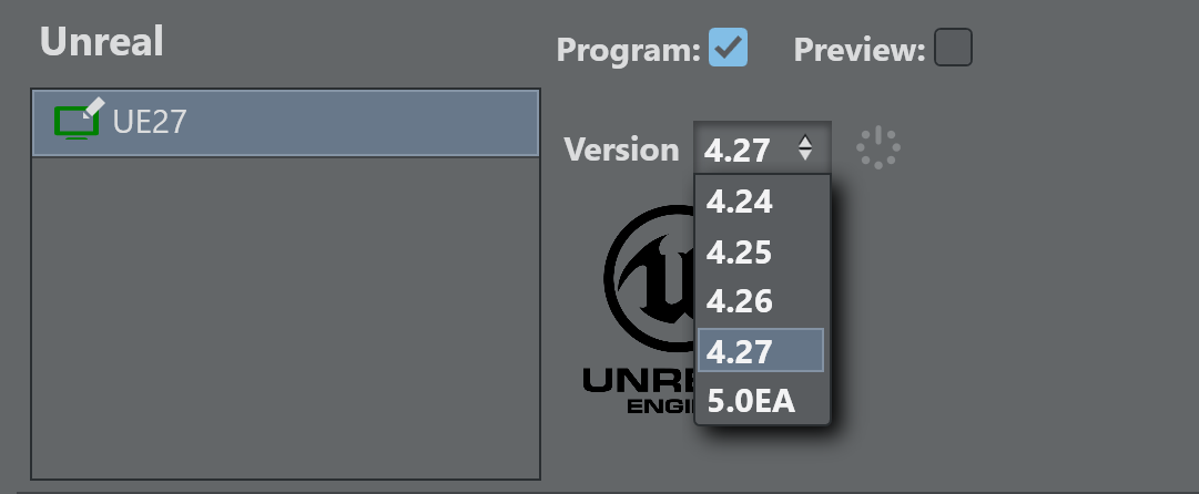 For each Engine, select the Unreal Version to be used by selecting it from the drop down menu. The adjacent start/restart button starts the respective Unreal version.