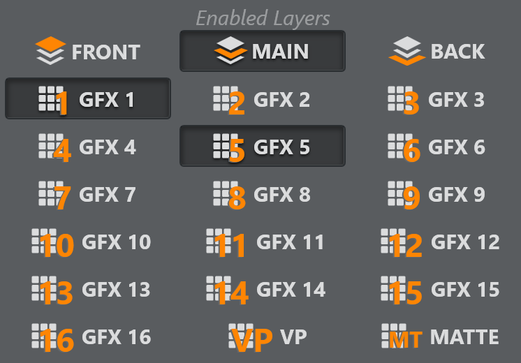Note: Layers let you send scenes and commands to different output levels within Viz Engine. The main layers are FRONT LAYER , MAIN LAYER and BACK LAYER. graphics are usually sent to the MAIN LAYER. If you want to view a graphic On Air you need to have at least one layer enabled.