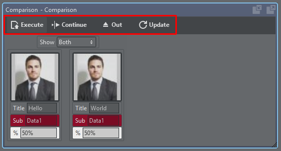 In case of a template action, the CTRL modifier is extended to the entire command header: