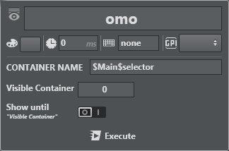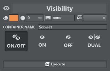 Use the visibility menu to toggle a container on or off. The container can be set to ONOFF, DUAL or toggled (switched to the opposite of the current state).