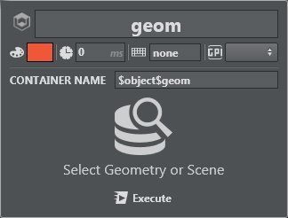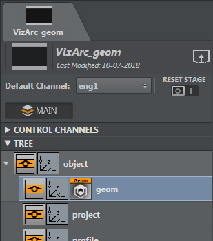 It’s also possible to select a SCENE instead of GEOM. Once the scene is loaded in the geom plugin, a separate edit section appears where it's possible to handle control object (if applicable) of the selected scene.