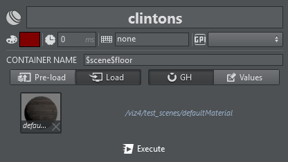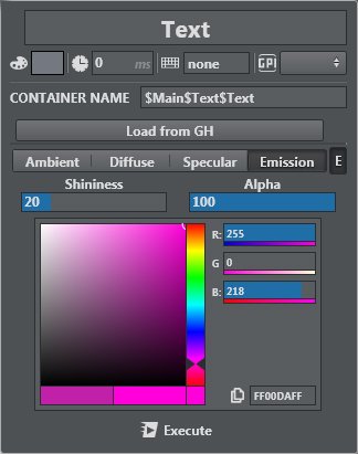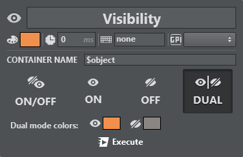 When DUAL mode is selected, left clicking Execute switches the container on and right clicking switches the container off. In the Dual mode colors section, two distinct colors can be defined for on and off states in order to make the state of the container more visible.