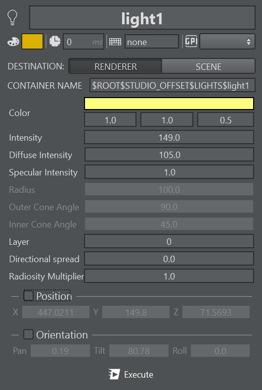 The light action works together with Viz Engine V4 lights. All light types are supported (directional, area, spot, point).