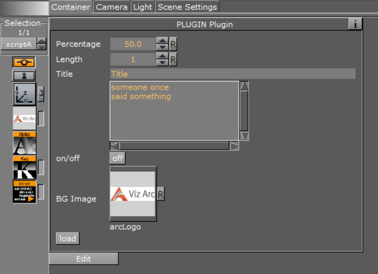 The Script action lets you modify the registered UI parameters of a Viz Engine container script. Additionally, it lets you invoke any of the script's functions with its respective parameters.