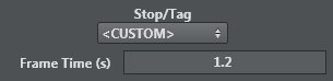 This menu lets you set the Stop/Tag for PLAY FROMPLAY FROM REVERSE and GO TO options, and the Frame Time for the CUSTOM option.