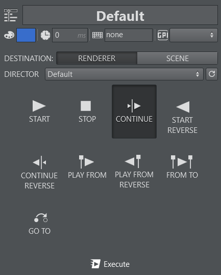 The Director Action shows the number of stop points when a specific director is selected (for example, not the <STAGE>). When the action is selected, a progress bar on top alongside with the currently reached stop point (for example, 2/3) is visualized. The number of stop points is read on the creation of the action and when the action is explicitly refreshed.