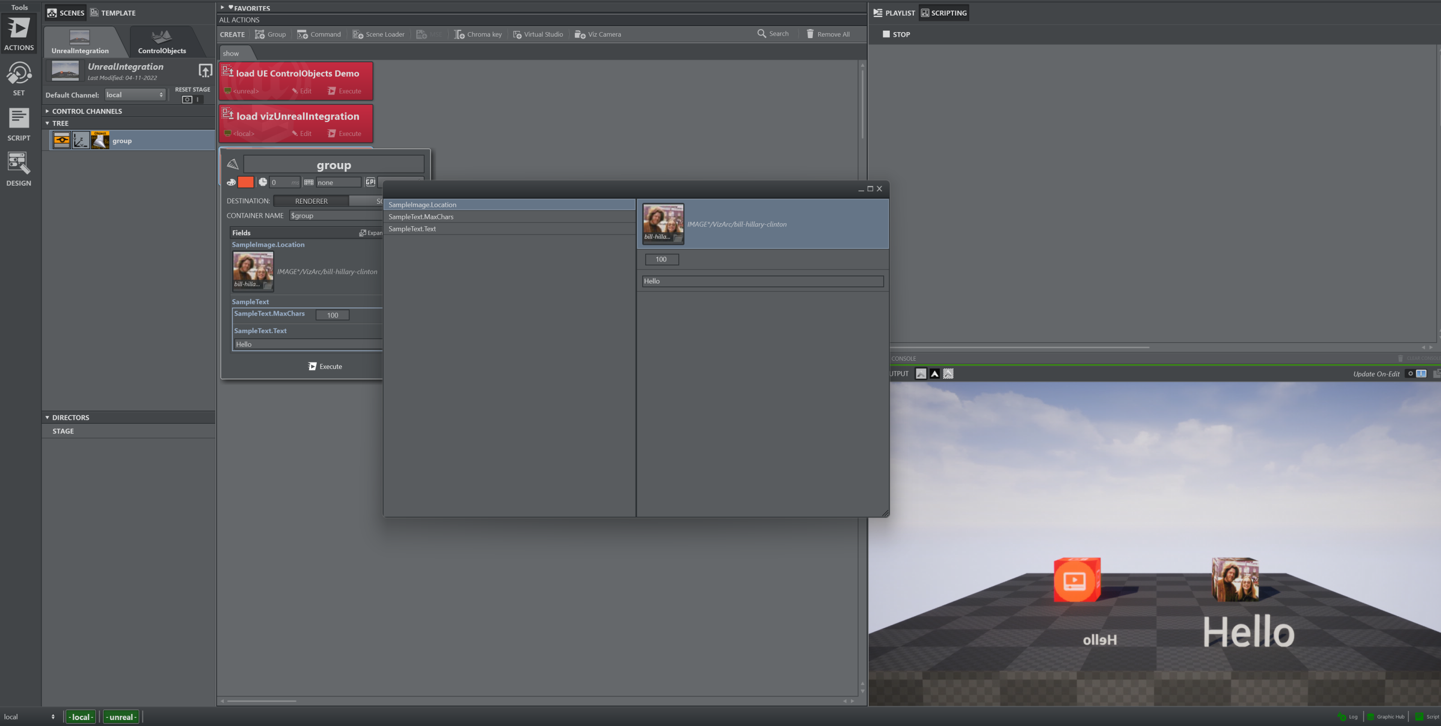 The Viz Engine's Control Object integration allows you to control aspects of the Unreal scene using Control Objects. Viz Engine's Control Objects can be used to ingest images from the Graphic Hub to the Unreal Engine.