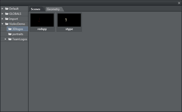 In Viz Arc, it's possible to import objectified scenes (GEOM) into another scene through the GEOMETRY element. Once the selected object is imported in the right GEOM, it's possible to load, update, refresh and continue. A step-by-step example of importing and playing an objectified scene follows below: