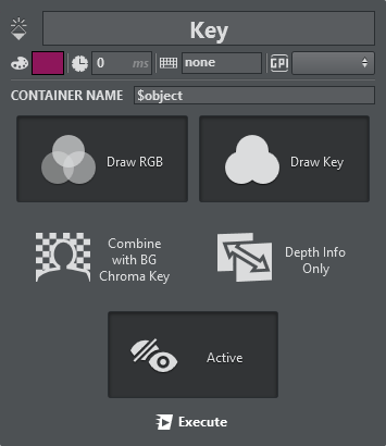 Active - shows if the Key plugin is active or inactive. Typically used in a green screen scenario to determine whether an object should appear in front of or behind the talent.