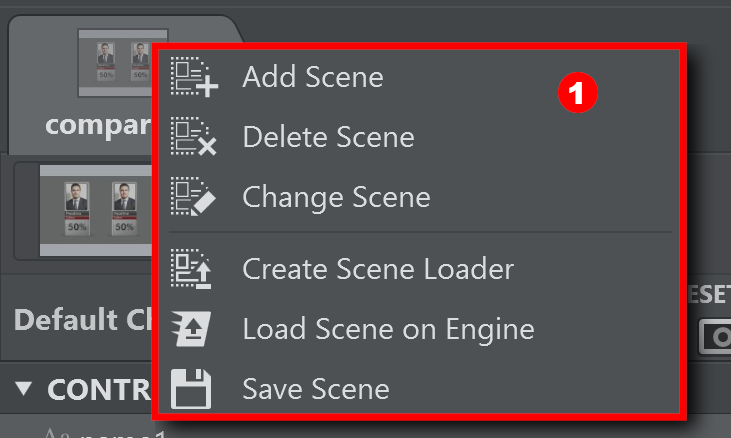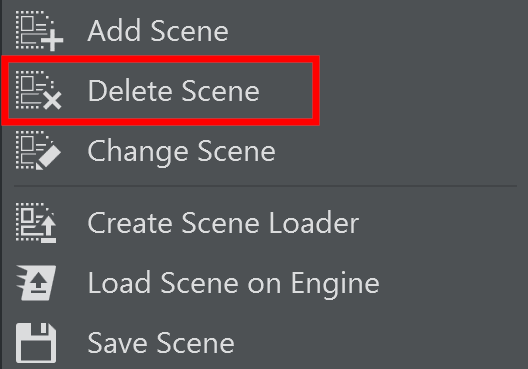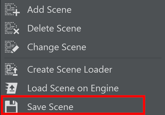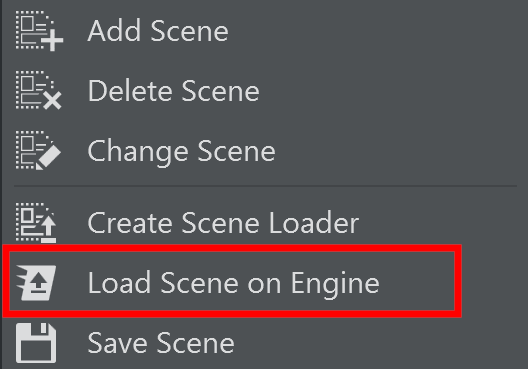 Right-click on the Scene tab from the scene panel, or Right-click on the scene loader from the | |