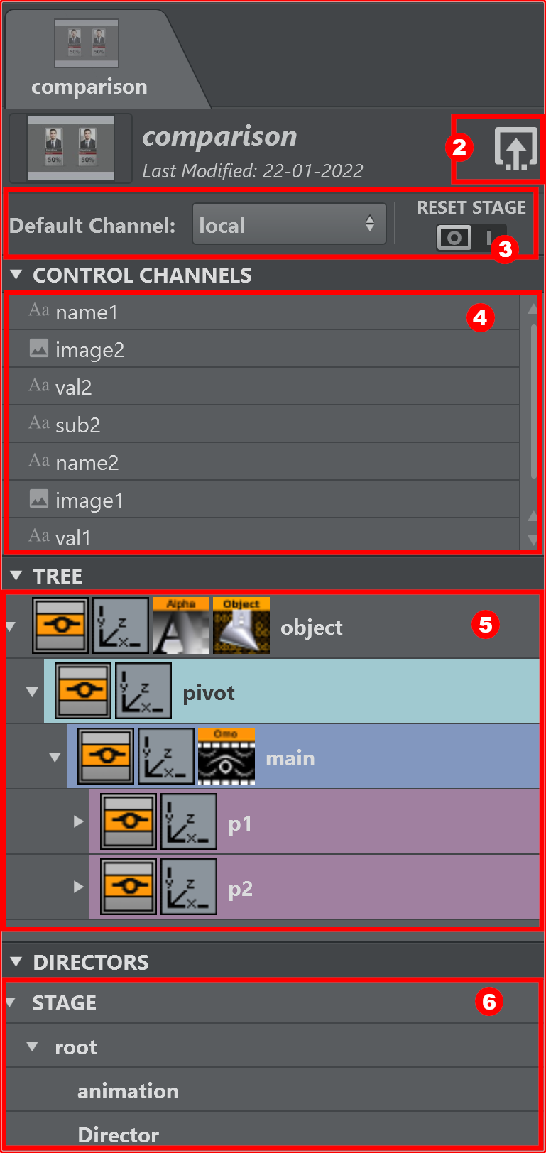 This section of the Scene Panel contains a list of any directors and sub-directors contained in the loaded Scene.