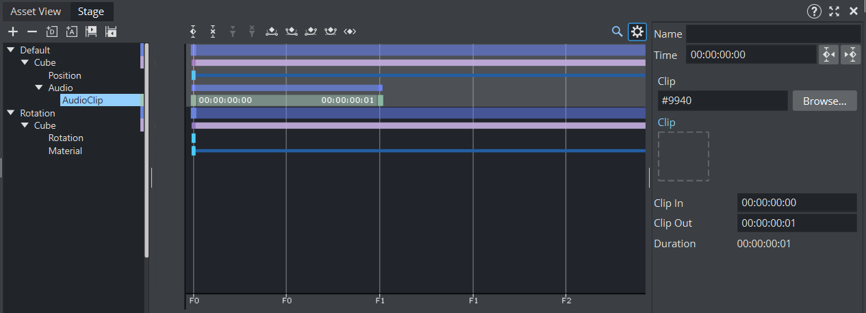 End Time: Sets the end time within the clip. Everything after this time is not played in the animation. Another way to achieve this is to drag the Key Frame at the end of the clip.